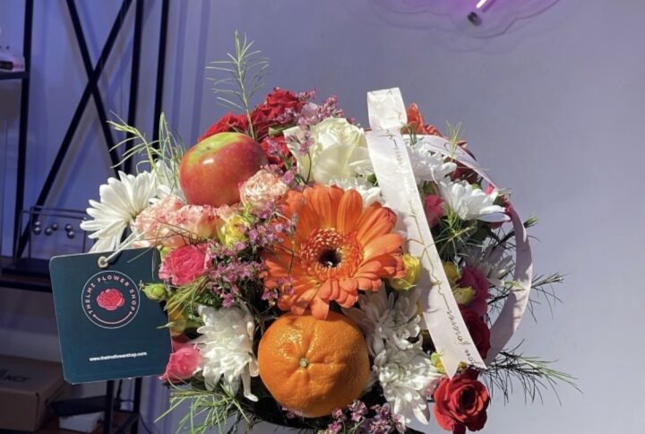 A woven basket filled with fruits in season. suitable for get well soon package, fasting season and loved ones